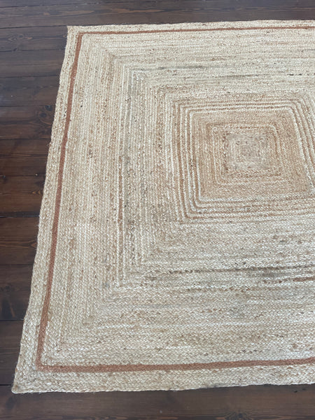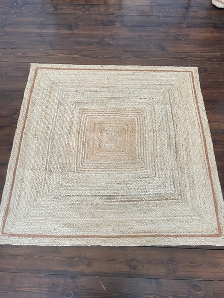 Wonderful Square Shape Soft Jute hand woven Rug with Ochre Trim. SIZE: 153/153 cms